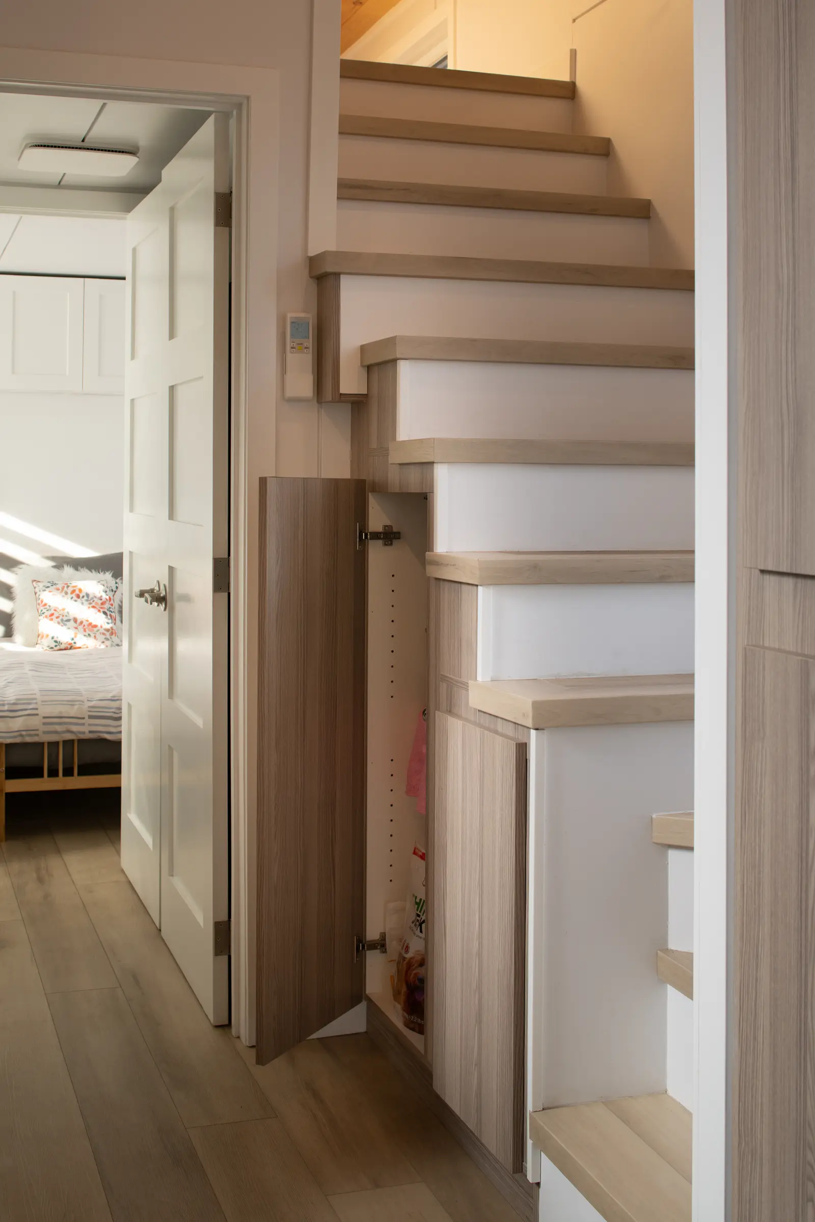Built-in bedroom closet, under-bed storage potential, kitchen pantry cabinet, and optimized bathroom cabinetry. Every cubic foot is considered.
